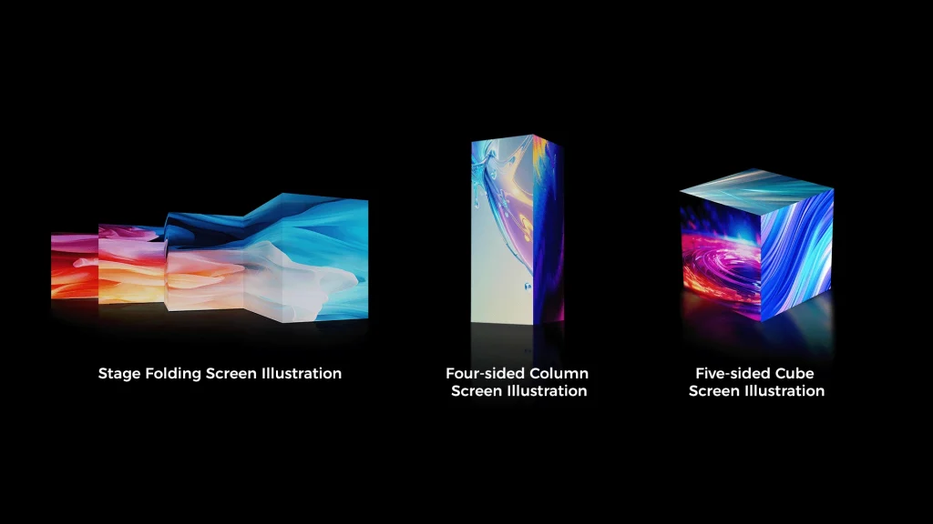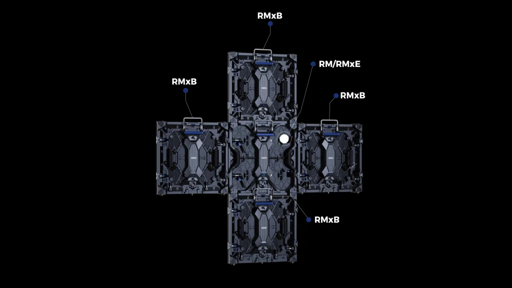 The RMB series adopts MINI 4-in-1 technology, supporting 90° splicing on all four sides. It can be combined with the RM/RME series flat panels. With its high-precision mechanics and excellent visual quality, it provides a creative stage, including flat, cube, or stage folding screens. Combining stable and reliable performance with cost-effectiveness, it creates an unforgettable visual experience.